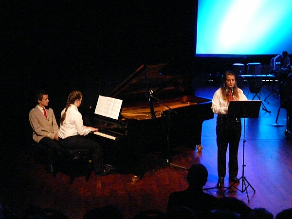 I pausen skapte et sjarmerende og velspilt bidrag fra aspirantmusikerne i skolekorpset begeistring i foajeen. Mens korpset før pause stilte i uniformer, var det etter pause klesbytte til korpsets nye T-skjorter da de kom marsjerende inn i salen. Musikkstykkene i andre økt var innledningsvis fra prosjektkonserter de siste årene: ”Peter Gunn theme” fra Blues brothers, ”When I’m 64” fra Beatles-forestilling, ”Circle of life” fra Løvenes Konge, og ”September” og ”Thriller” fra 1980-tallsforestilling.
