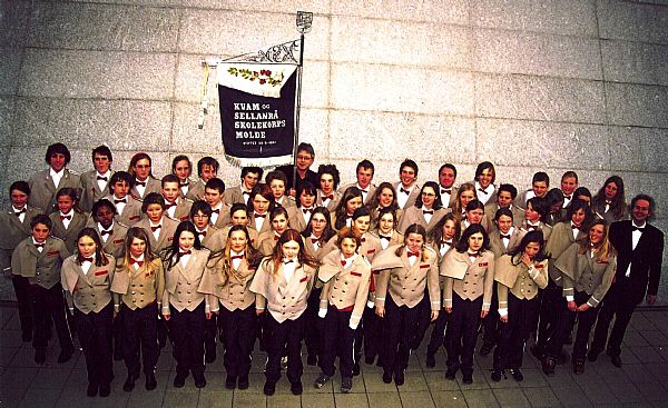 Kvam og Sellanrå skolekorps - 40-års jubileumsbilde av hovedkorpset tatt utenfor Bjørnsonhuset 12. mars 2004