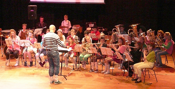 Flere av korpsets dyktige aspiranter spilte ”Summer nights” sammen med hovedkorpset.