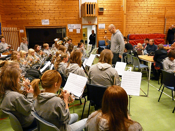Kvam og Sellanrå skolekorps med dirigent Jens Kristian Mordal. (Foto: Arild Erlien) |