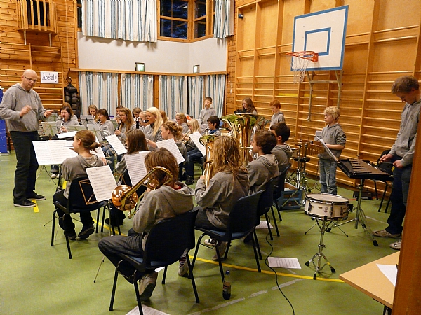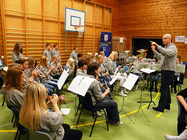 Kvam og Sellanrå skolekorps med dirigent Jens Kristian Mordal. |