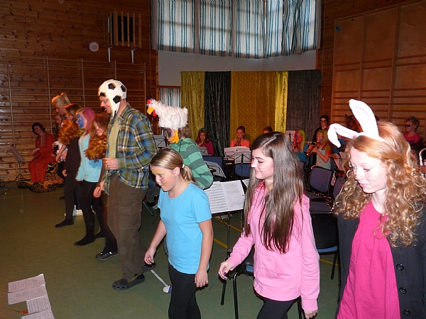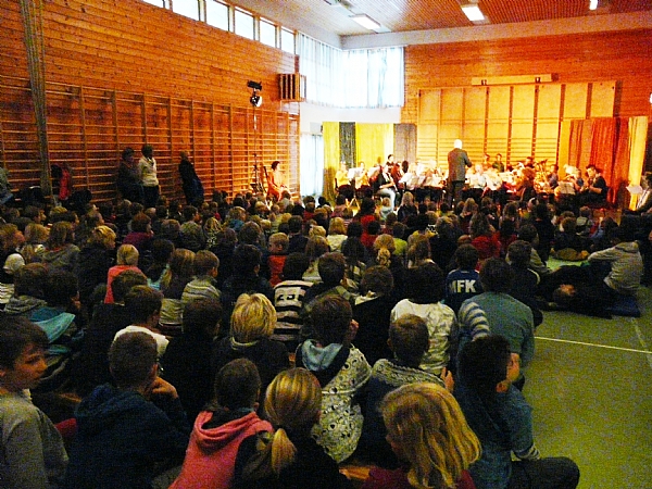Med den suksessen og gode framføringen korpset hadde av Løvenes Konge i Kulturhuset i juni, og at musikantene fortsatt hadde musikken og forestillingen ferskt i minne, ønsket vi at enda flere skulle få oppleve Løvenes Konge, som er godt egnet for barn. Da var det naturlig å framføre den til elevene ved de to skolene som skolekorpset rekrutteres fra.
